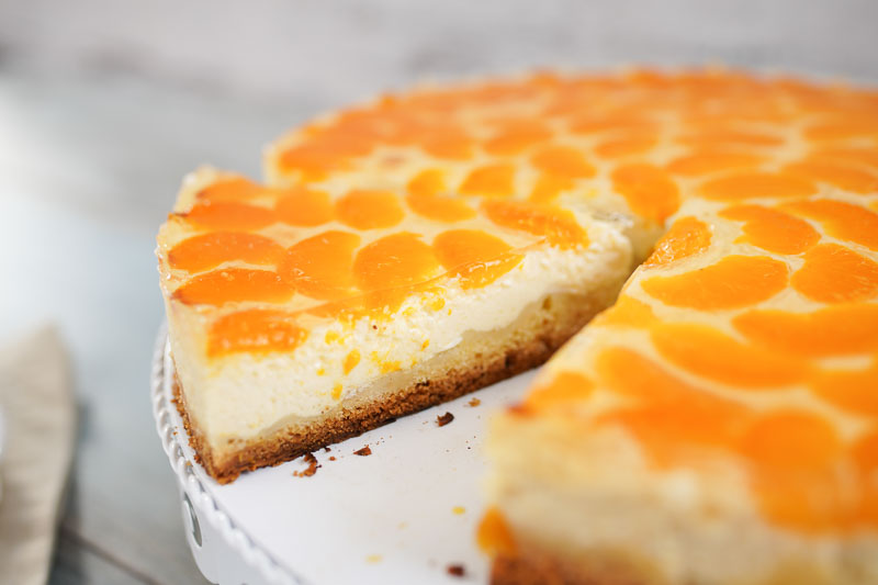 Wenn der Kuchen erkaltet ist, aus dem Mandarinensaft und dem Tortengusspulver nach Packungsanleitung einen Guss herstellen und den Kuchen damit überziehen.